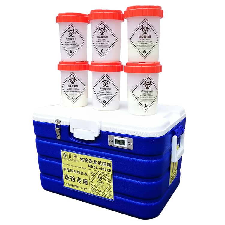 这是一款配置环形固定冰盒的A类B类均能适用的转运箱,环形冰盒能使冷量集中,均匀包裹生物安全送检罐,使采集的样本均匀置于制冷环境中,充分保障样本的活性。